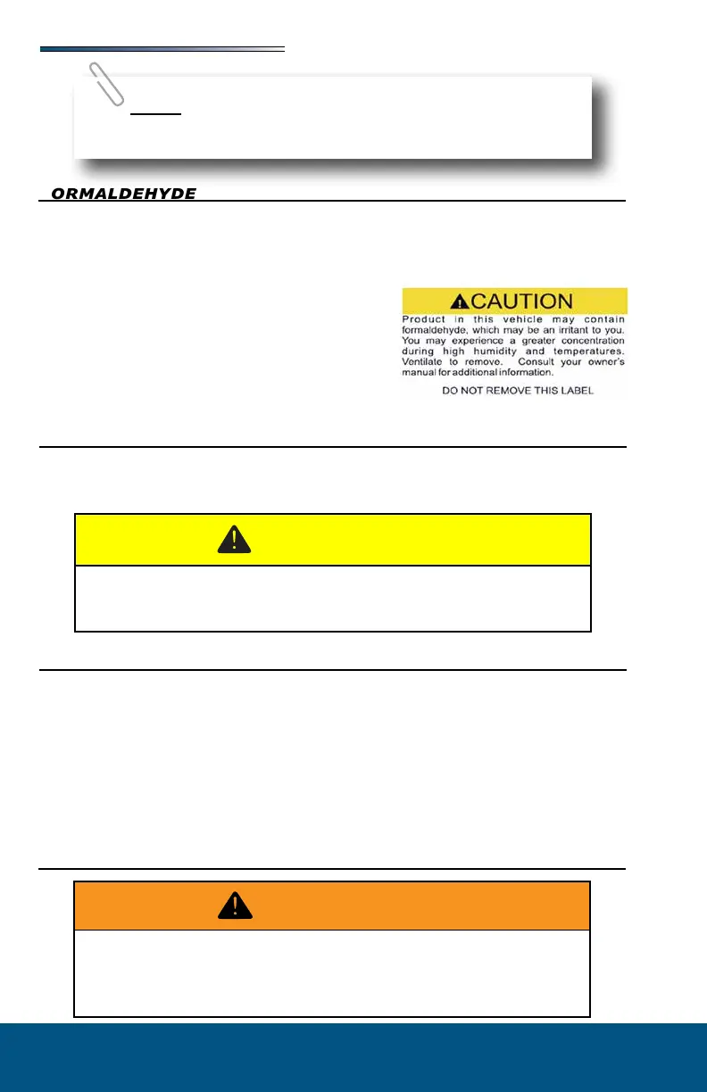 Some components in the recreation vehicle contain formaldehyde-based adhesives that may