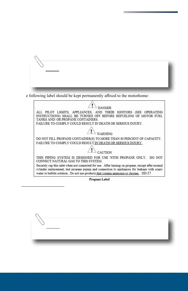 leakage. Travel vibrations can loosen ttings. Have the vehicle propane system checked
