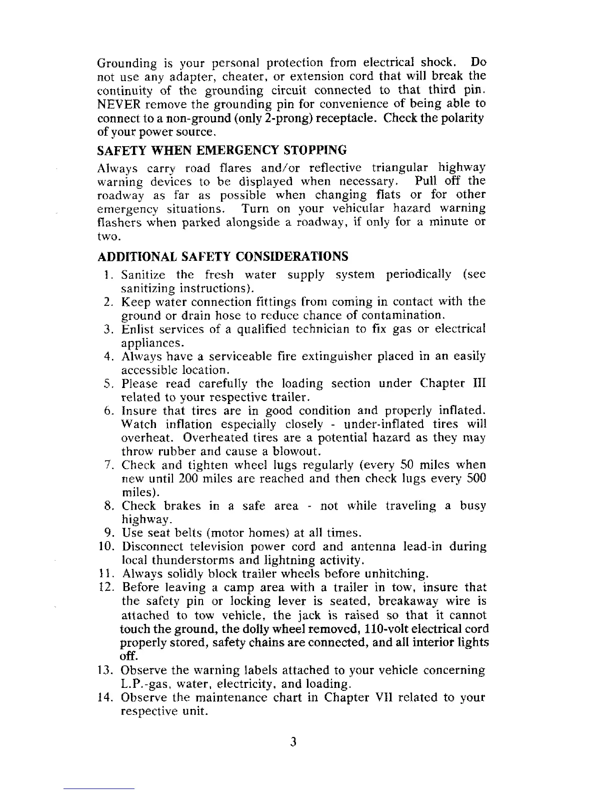 Use seat belts (motor homes) at all times.