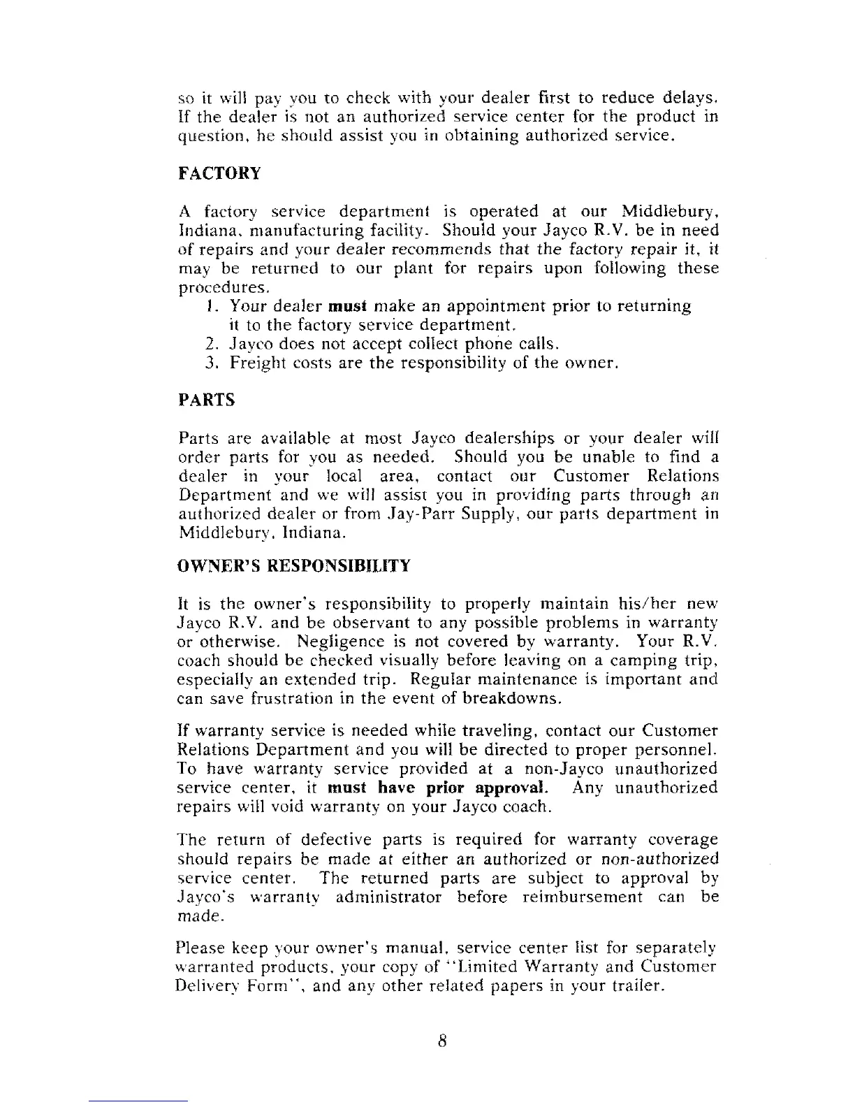 repairs will void warranty on your Jayco