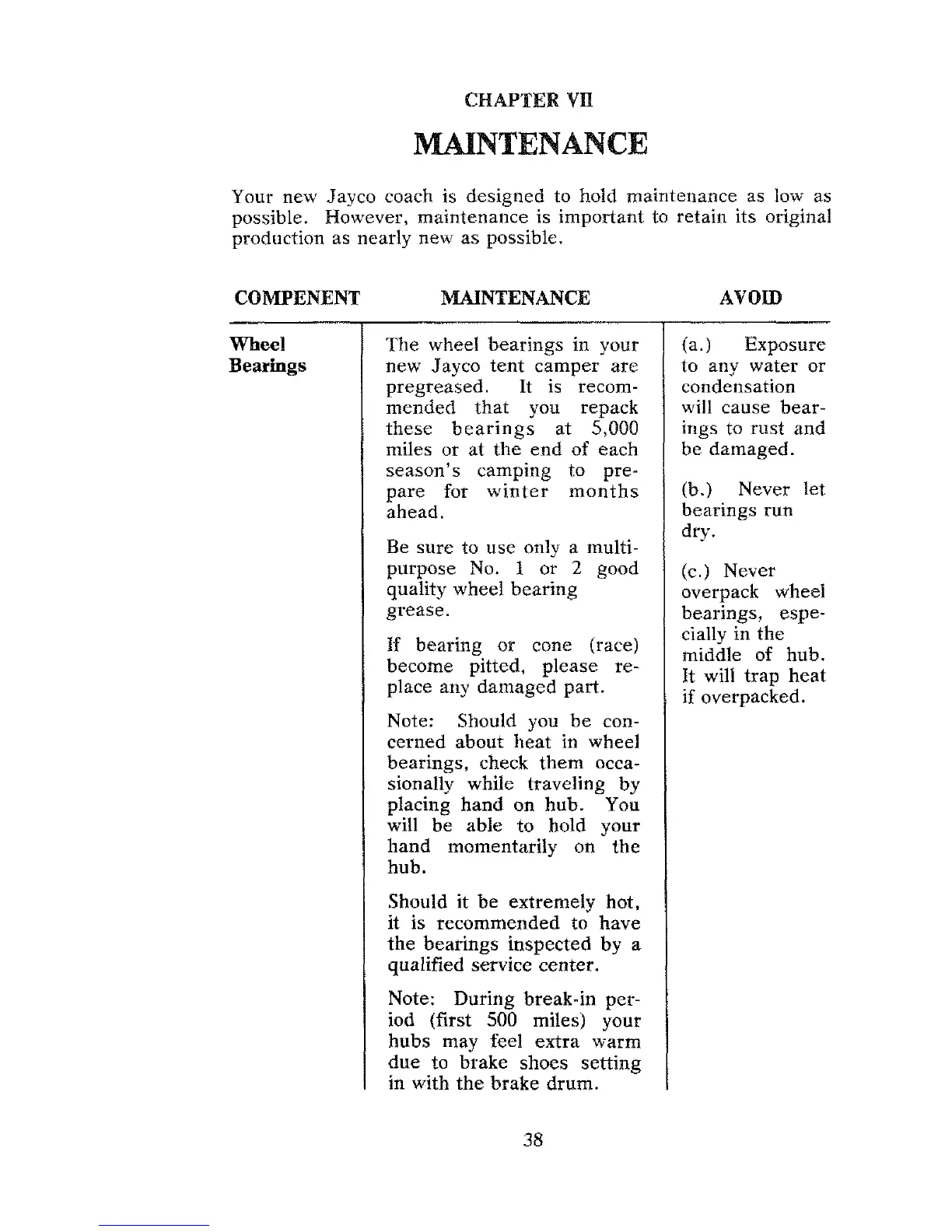 Jayco Dove - COMPONENT MAINTENANCE CHECKLIST
