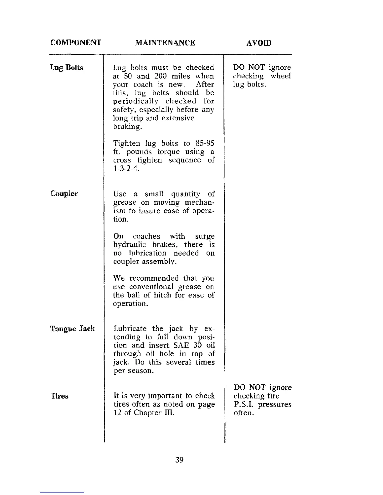Jayco Dove - Eugbolts; Coupler; Tonguejack; Tires