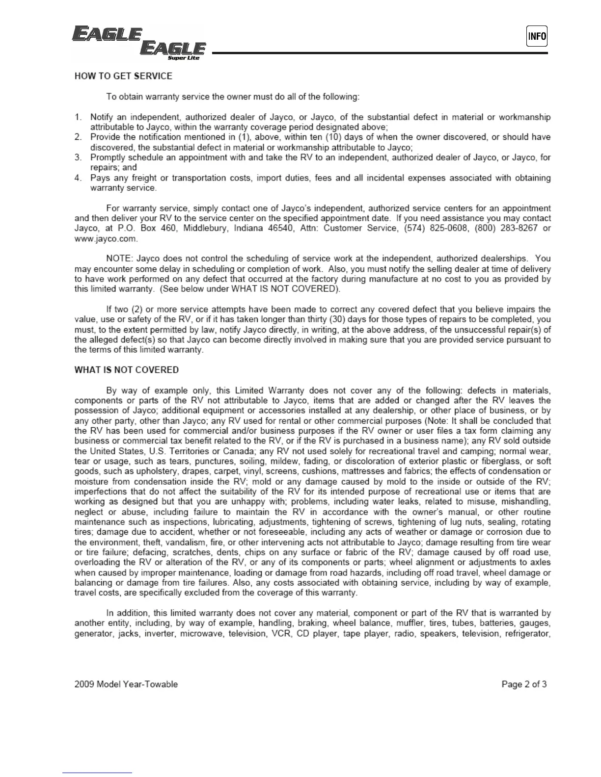Jayco Eagle Eagle Super Lite - WHAT IS NOT COVERED
