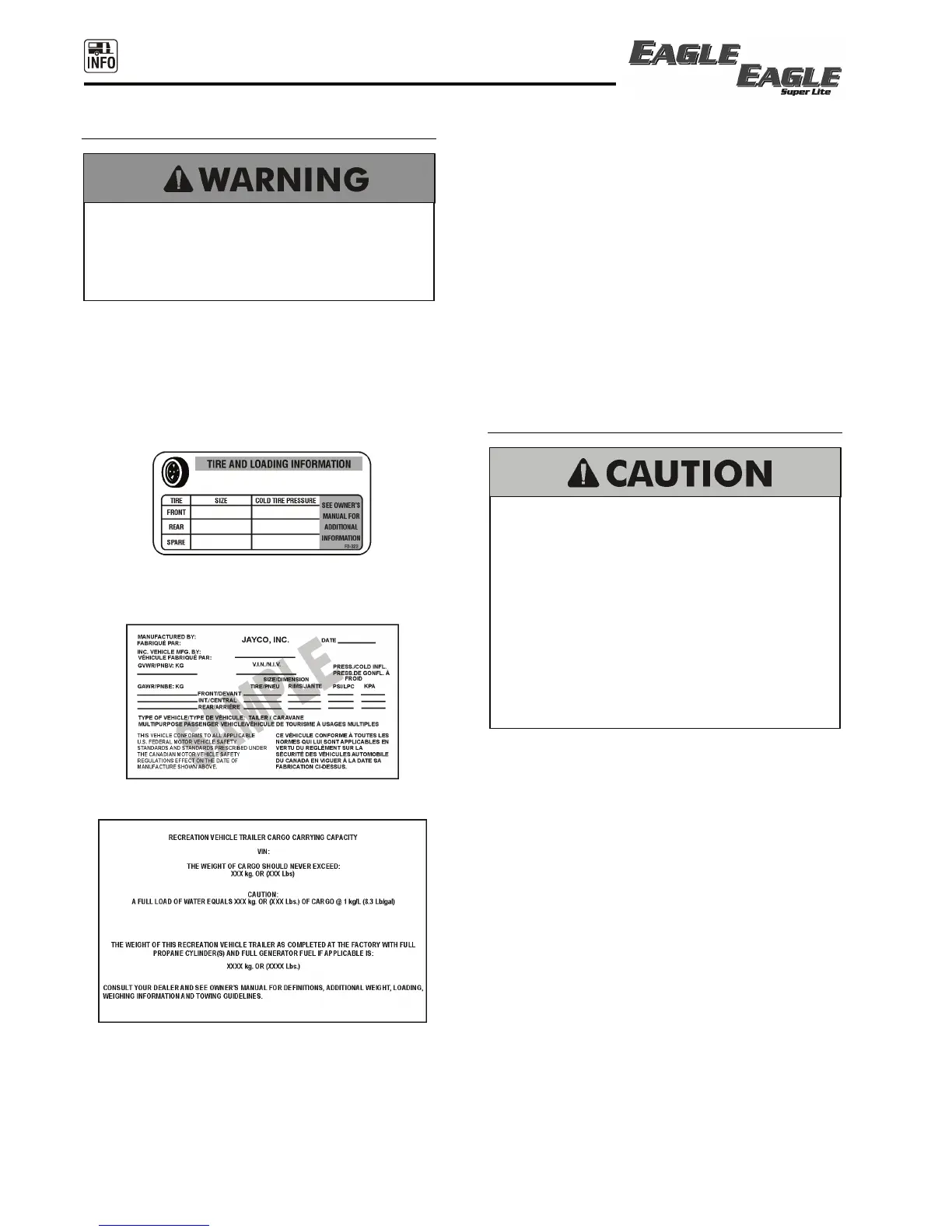 Vehicle weight labels are posted on Jayco