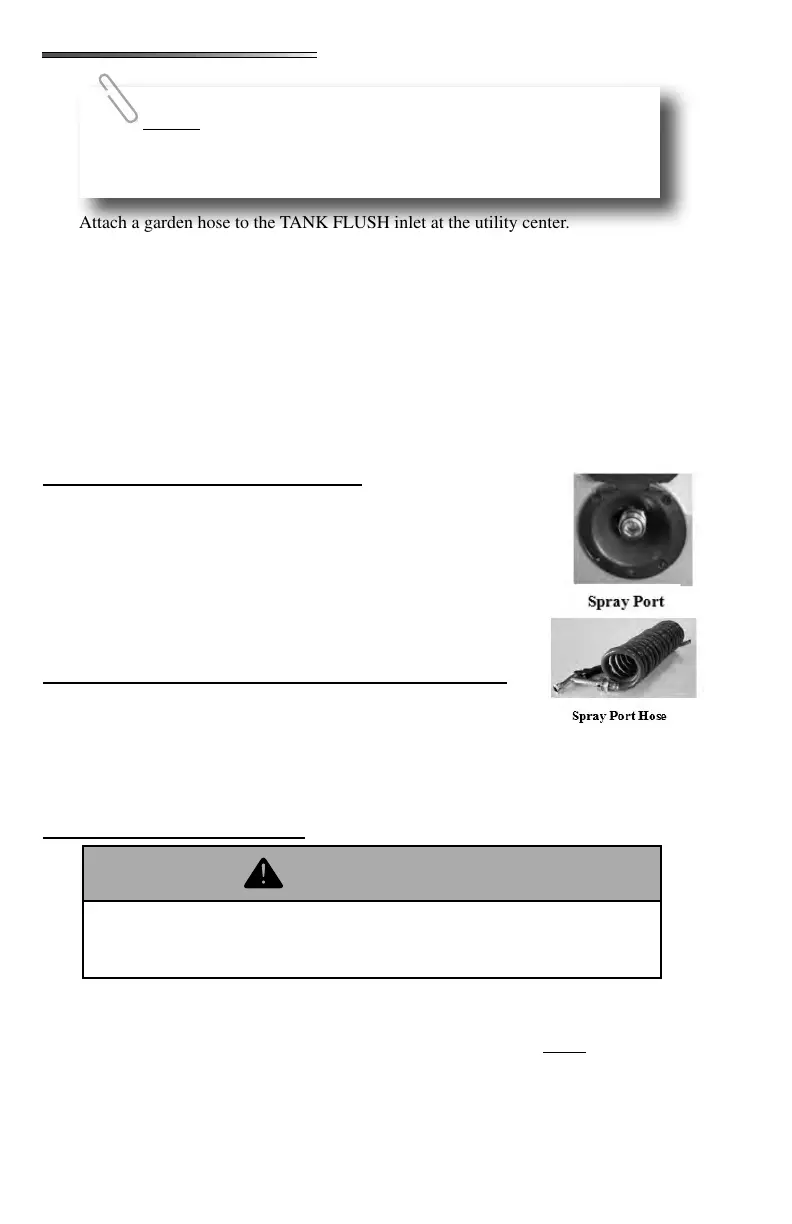 5. Attach a garden hose to the TANK FLUSH inlet at the utility center.