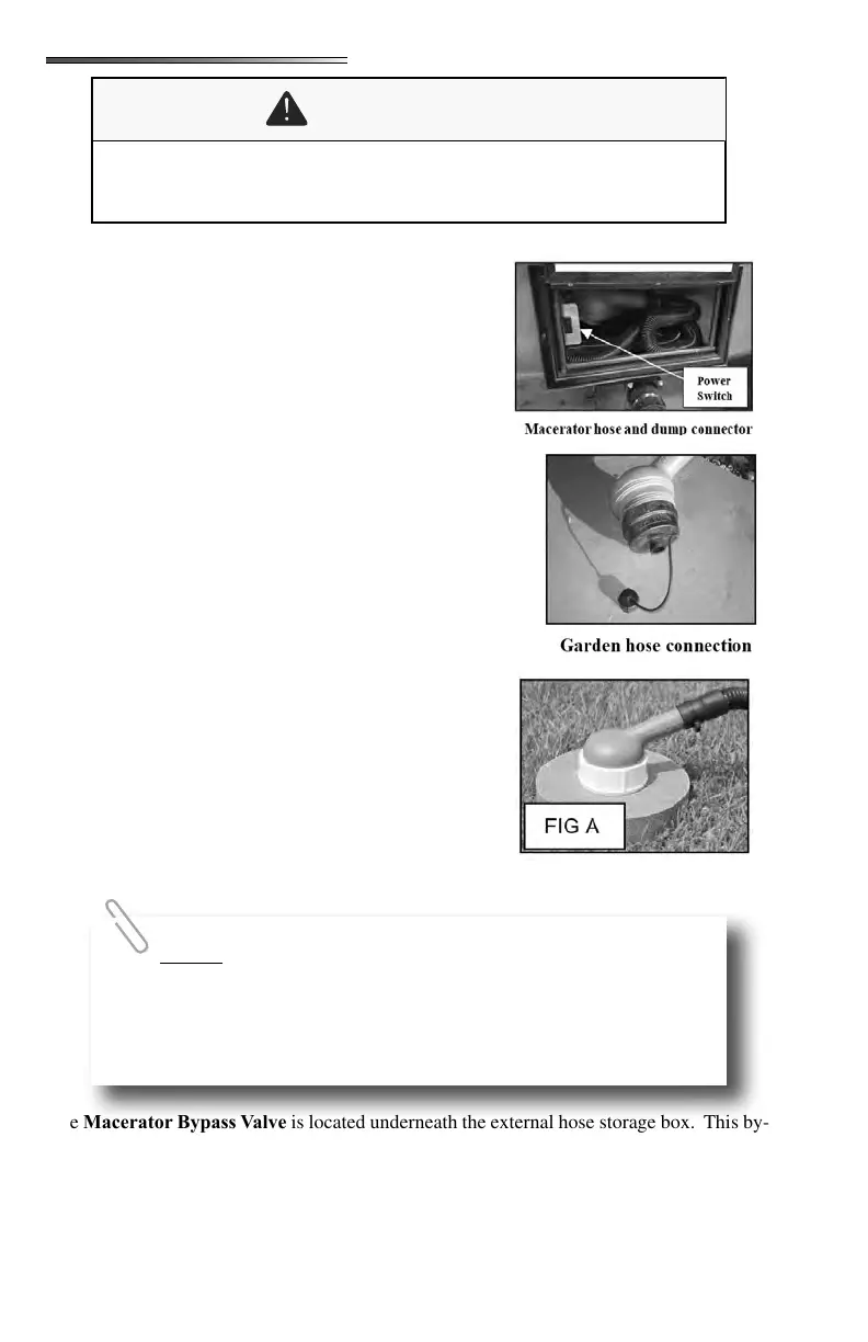 the dump station (Fig A), or to a 3/4-inch garden hose