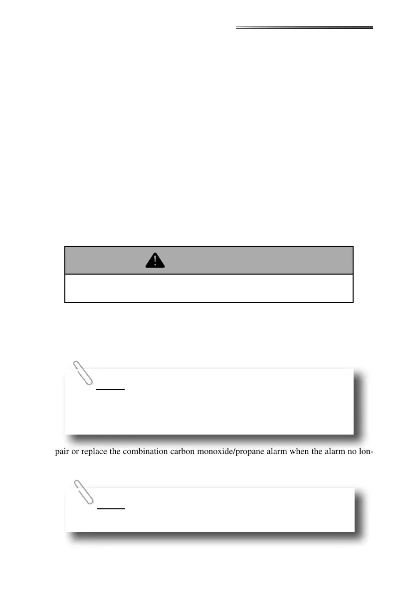 Repair or replace the combination carbon monoxide/propane alarm when the alarm no lon-