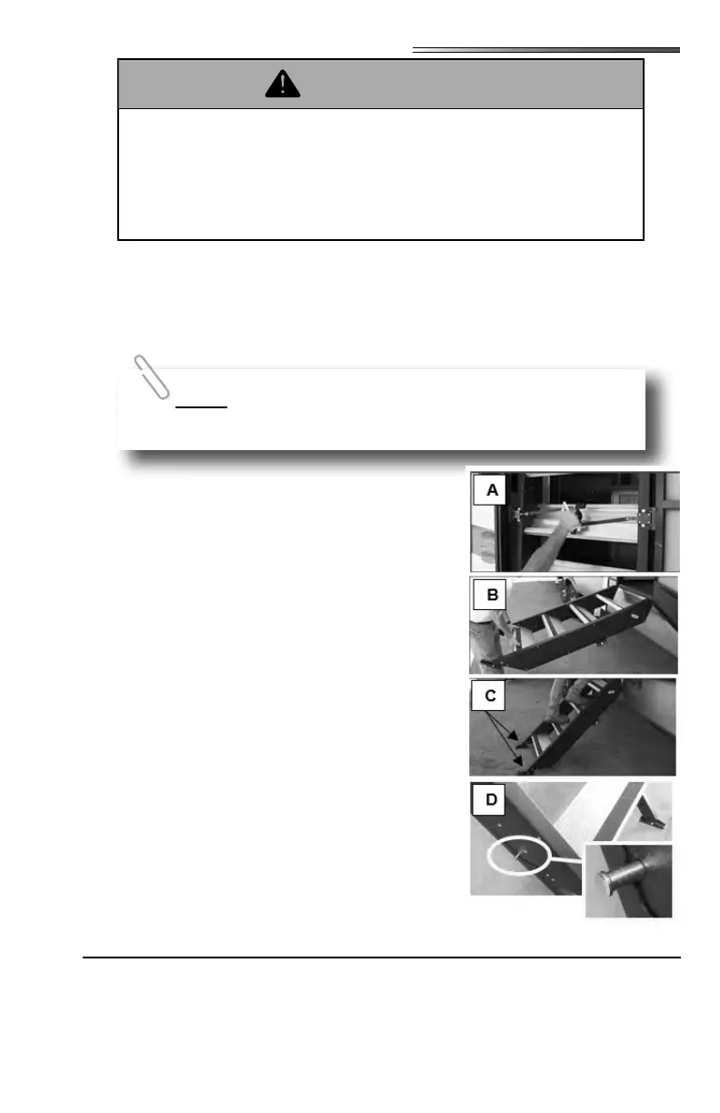 5. Remove pins (D) on each side of the step to adjust