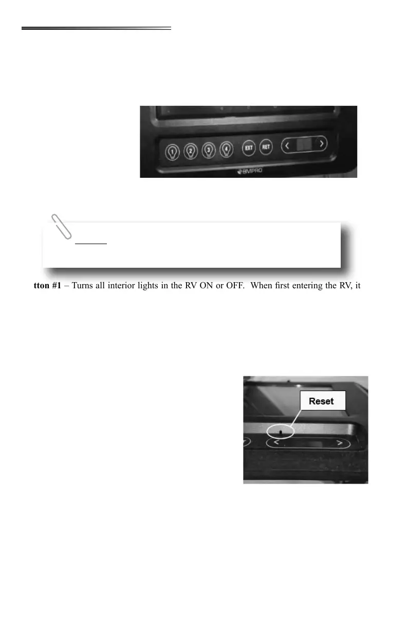 – Turns all interior lights in the RV ON or OFF. When rst entering the RV, it