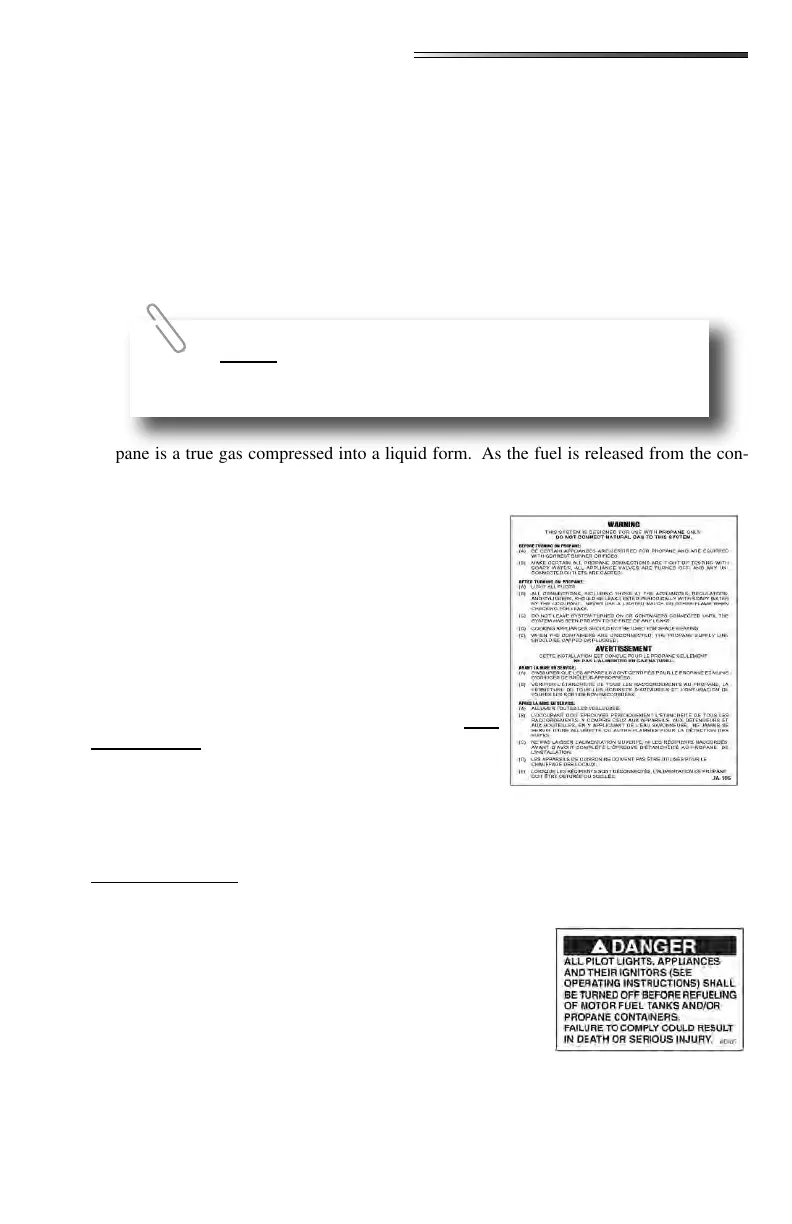 tainer, it changes to vapor which is then used for the operation of the appliances. Propane