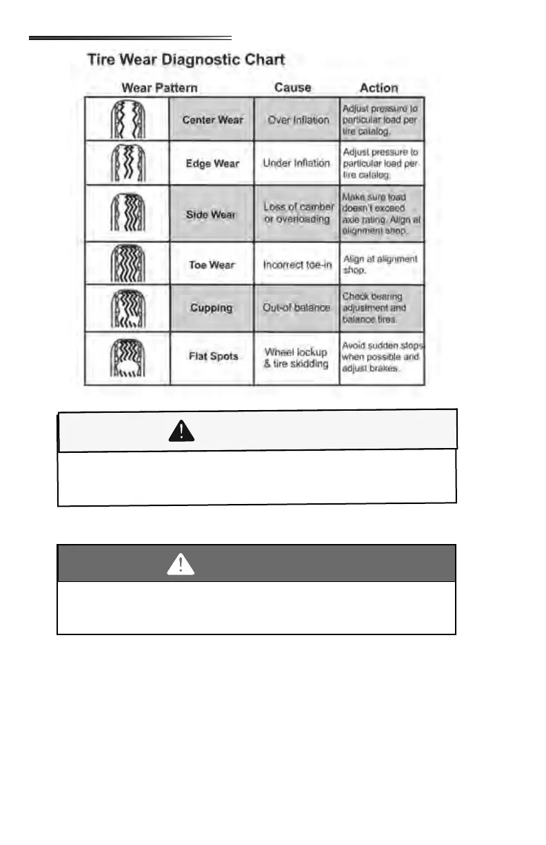 of a tire causing a blowout. Ination pressure should be as recommended by the tire manu-