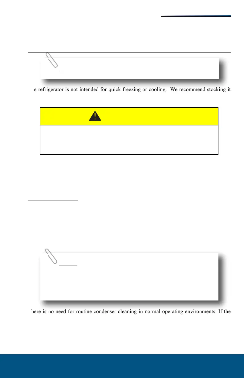 with pre-frozen or pre-cooled food when possible. The shelves should not be covered with
