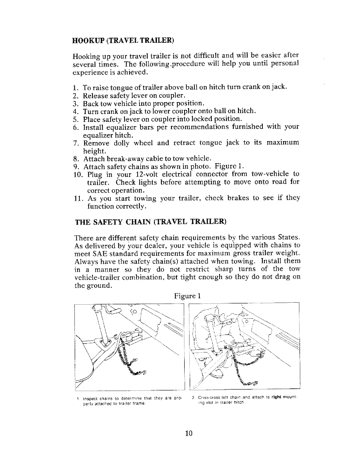Attach safety chains as shown