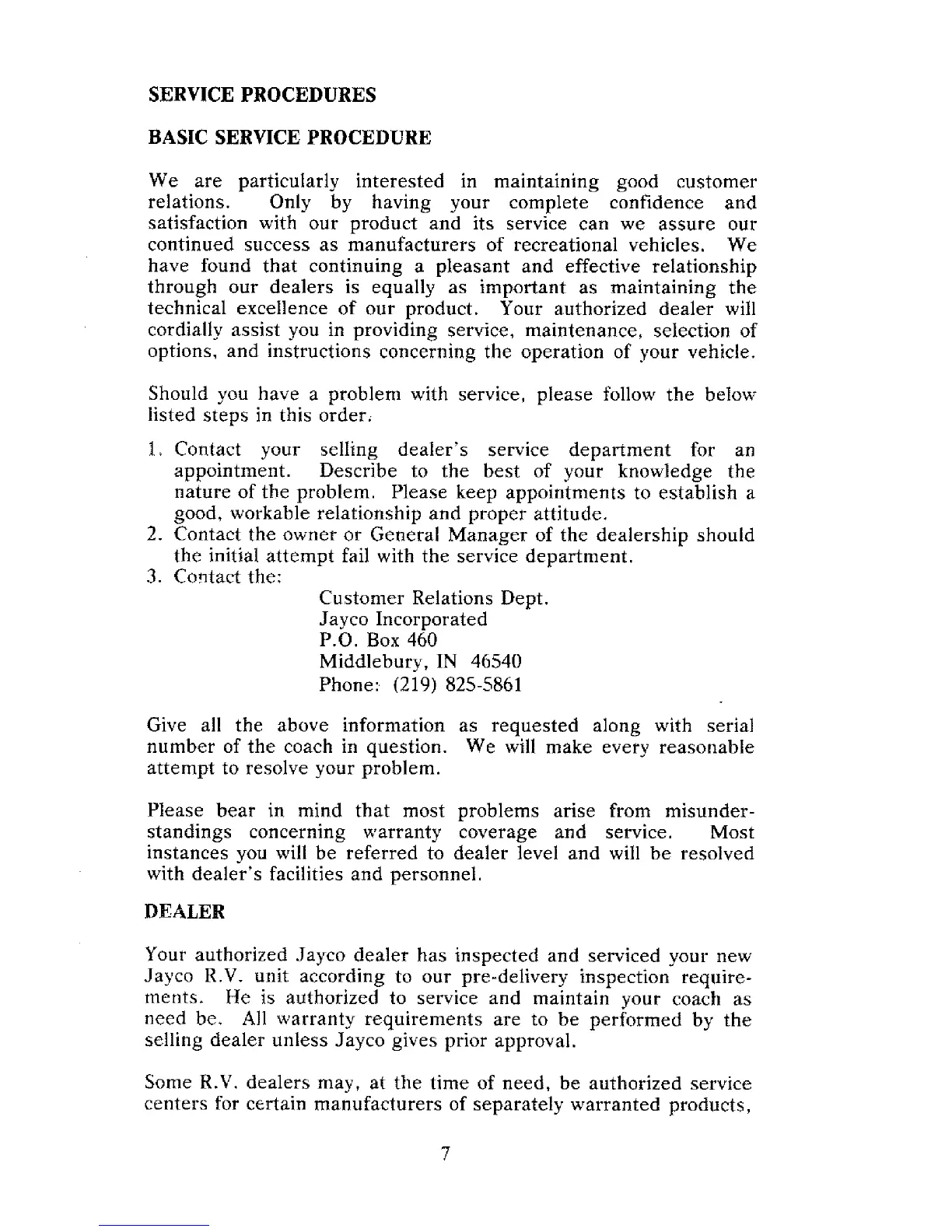 Your authorized Jayco dealer has inspected and serviced your new