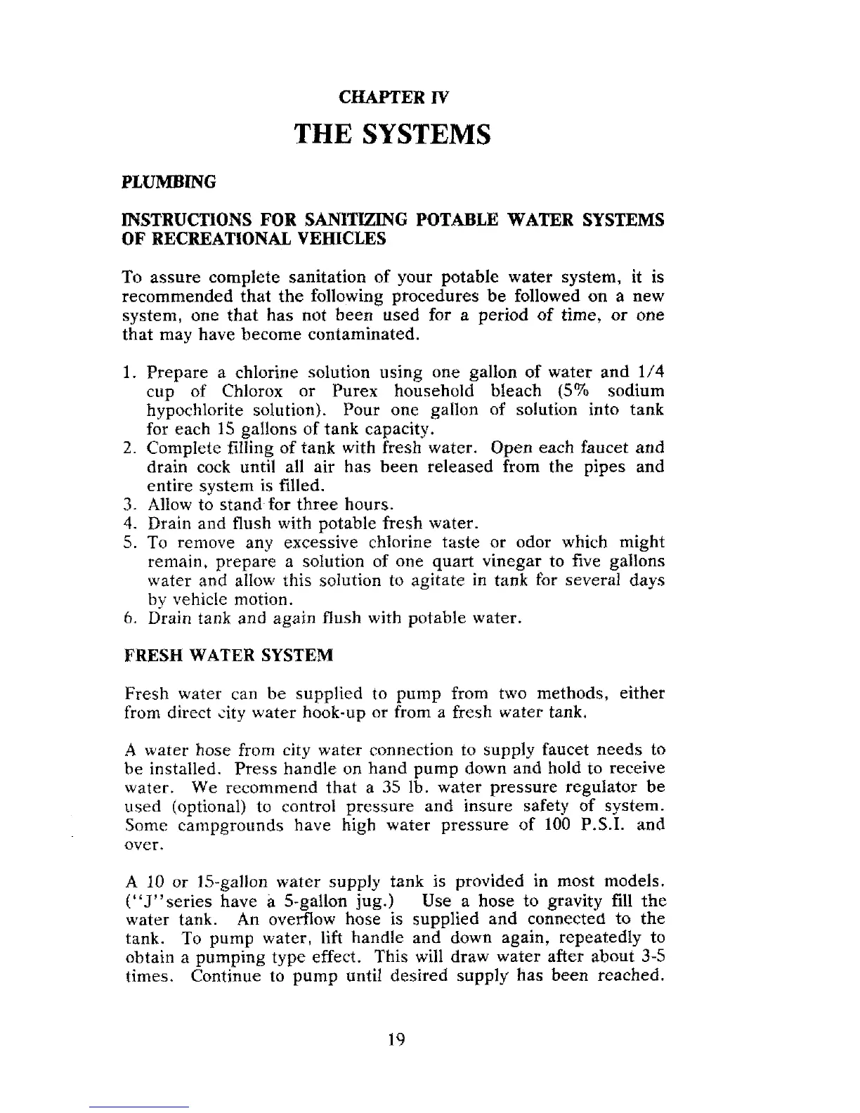 tank with fresh water. Open each faucet