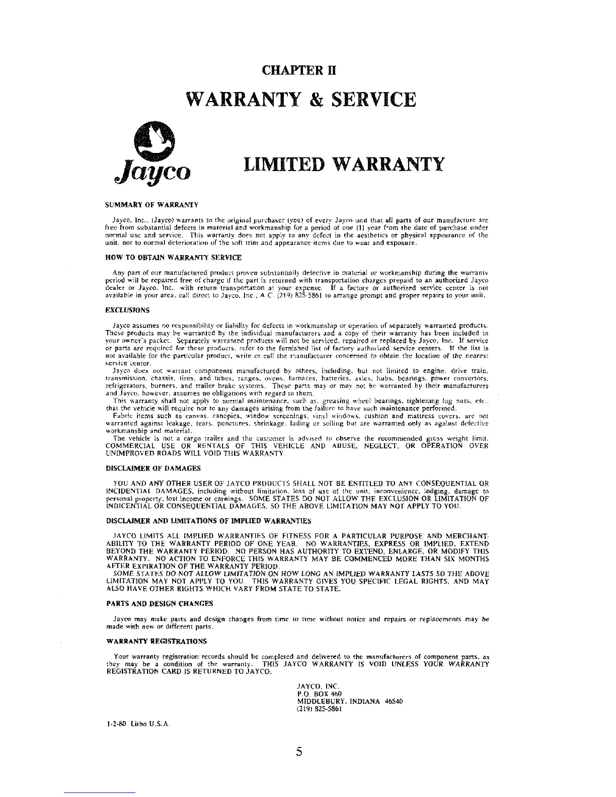 JAYCO LIMITS ALI. IMPLIED WARRANTIES