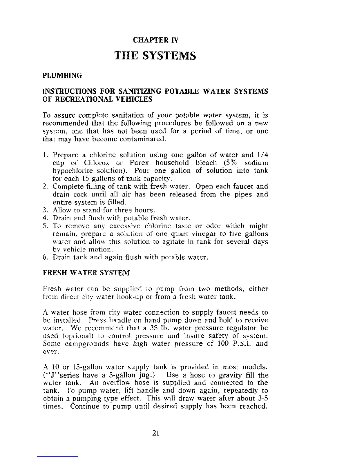 or 15-gallon water supply tank is provided in most models.
