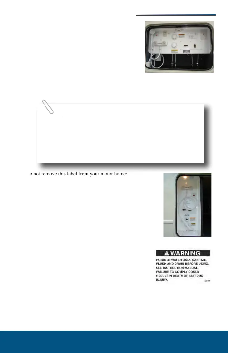 container of fresh water, sanitizer or RV antifreeze (refer to Sanitiz-