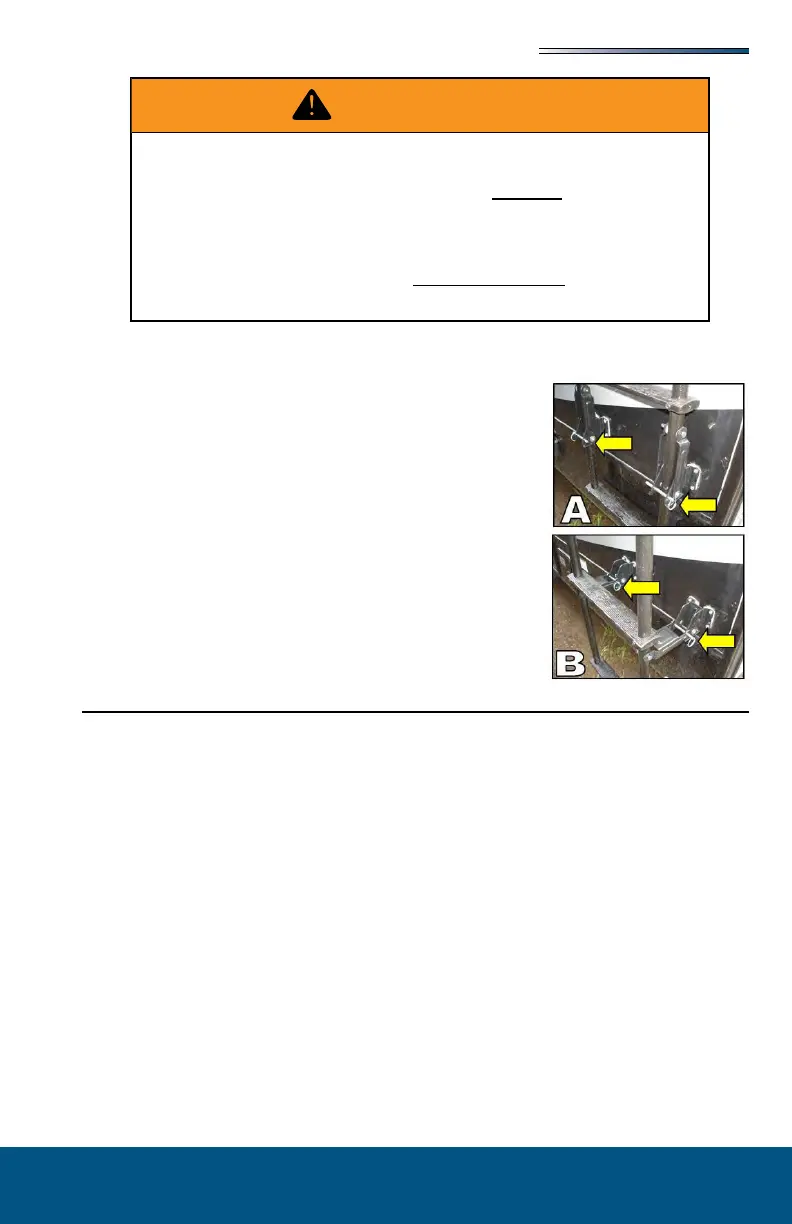 pins (arrows) to lock the ladder in place while in use.