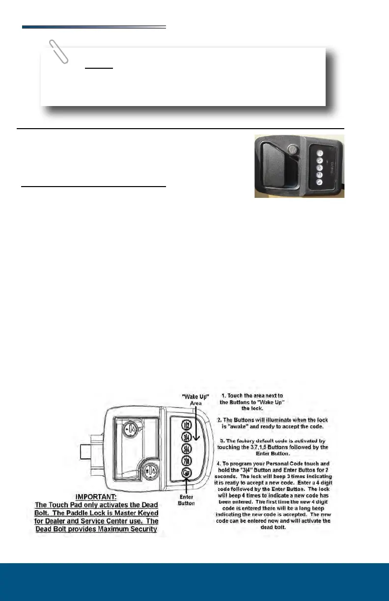 The battery powered entry system is a 4 button touch pad