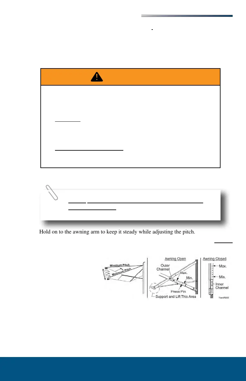 1. Hold on to the awning arm to keep it steady while adjusting the pitch.