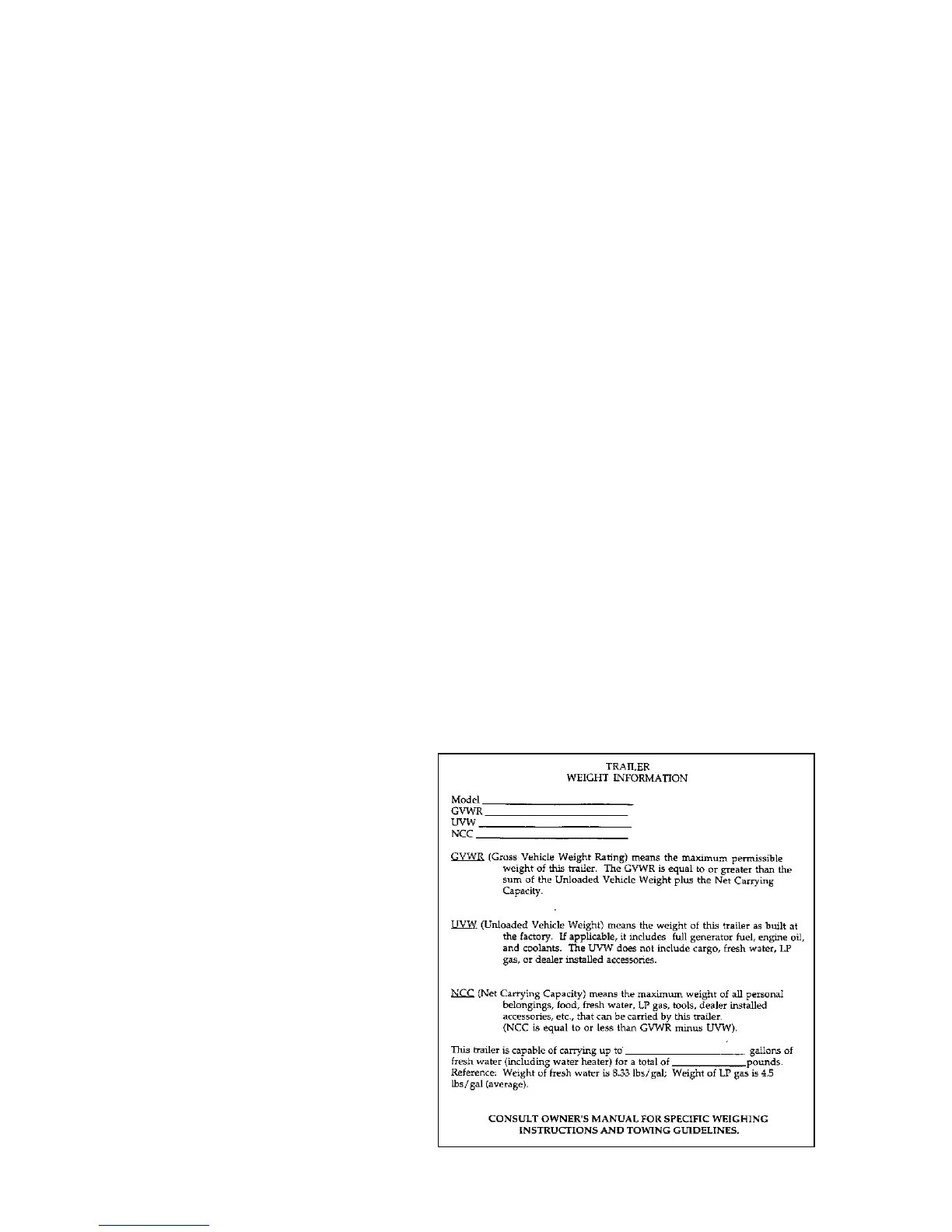 weight your recreational vehicle should weigh with all liquids (water, LP Gas, if