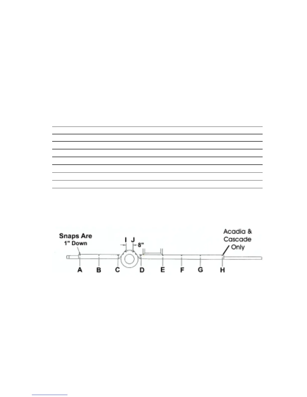 2. Using the placement chart below, drill 1/8" holes under the sidewall, through the