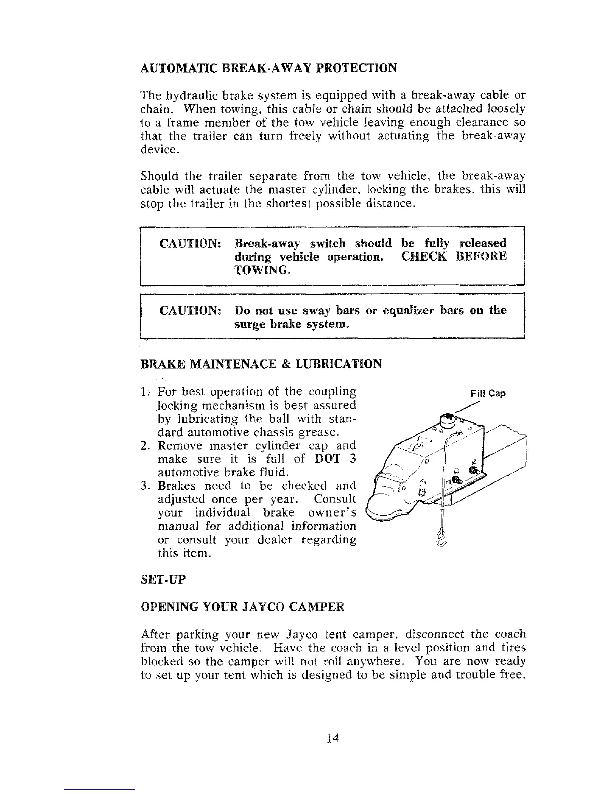 Jayco J-1006 - AUTOMATIC BREAK-AWAY PROTECTION; BRAKE MAINTENANCE & LUBRICATION; SET-UP