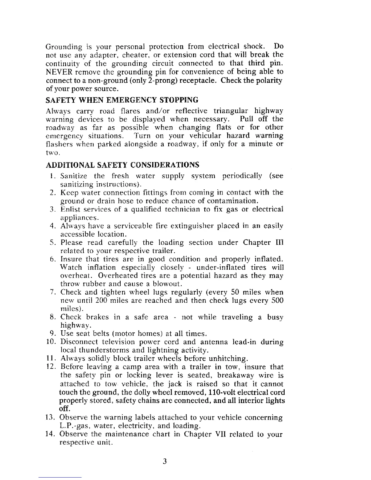 Use seat belts (motor homes) at ail times.