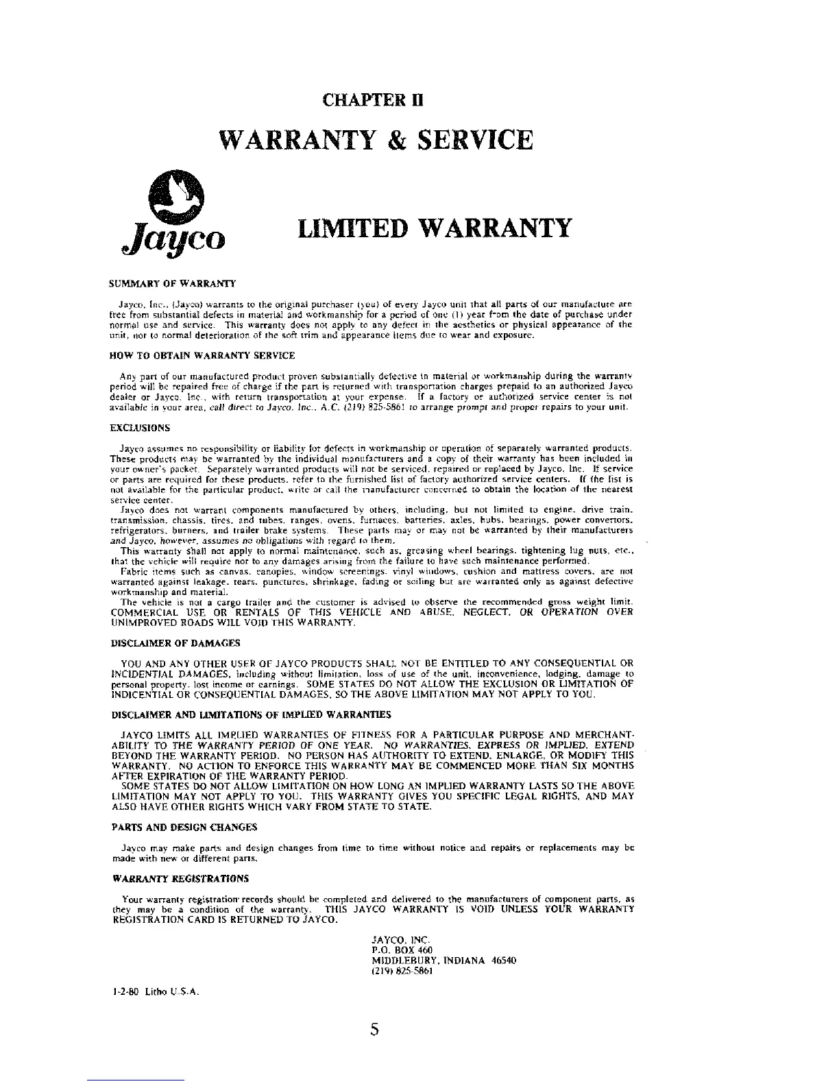 the u,artant). THIS JAYCO WARRANTY