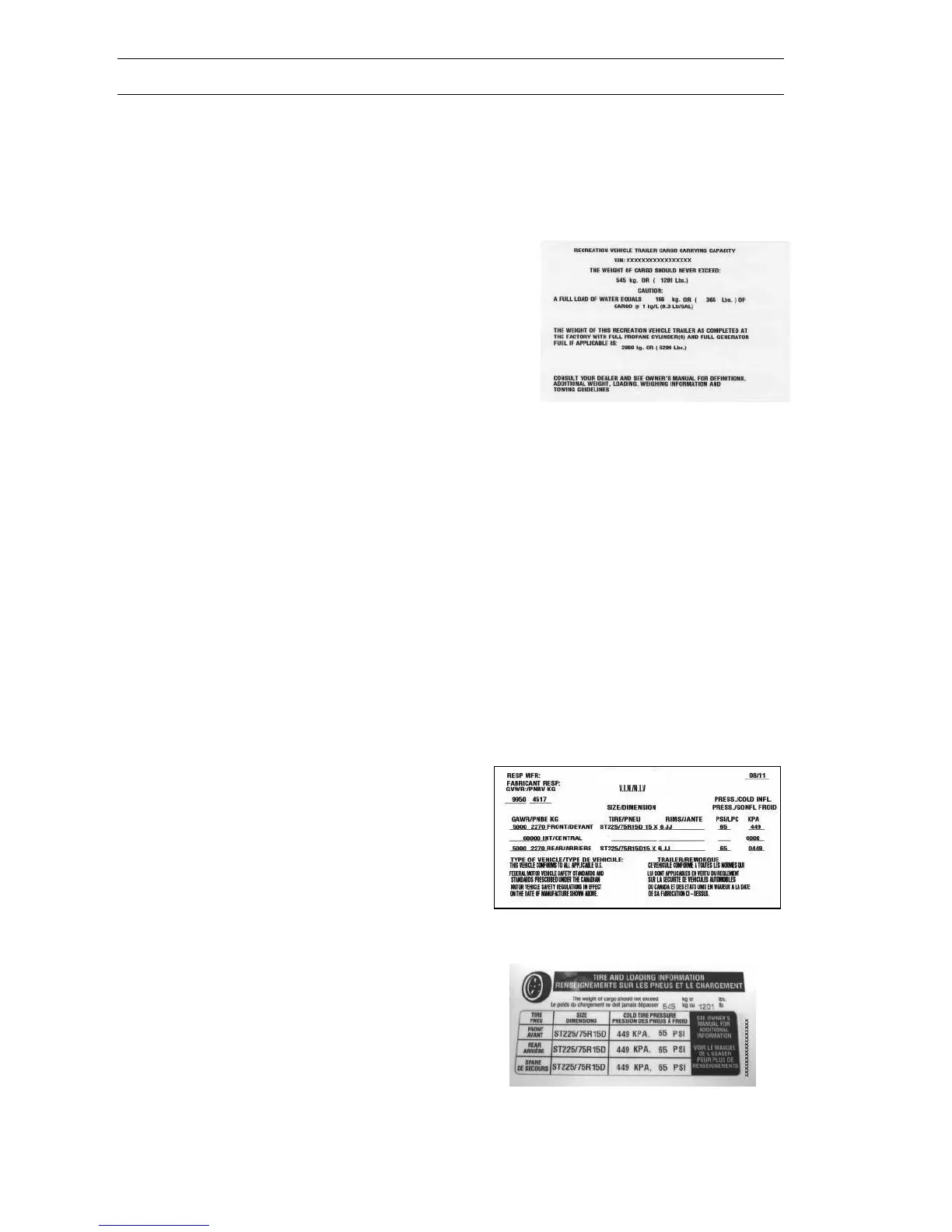 Certification label, an Occupant & Cargo Carrying Capacity label, and a Tire and Loading