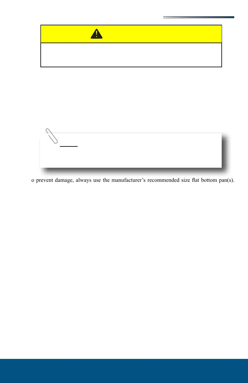 To prevent damage, always use the manufacturer’s recommended size at bottom pan(s).