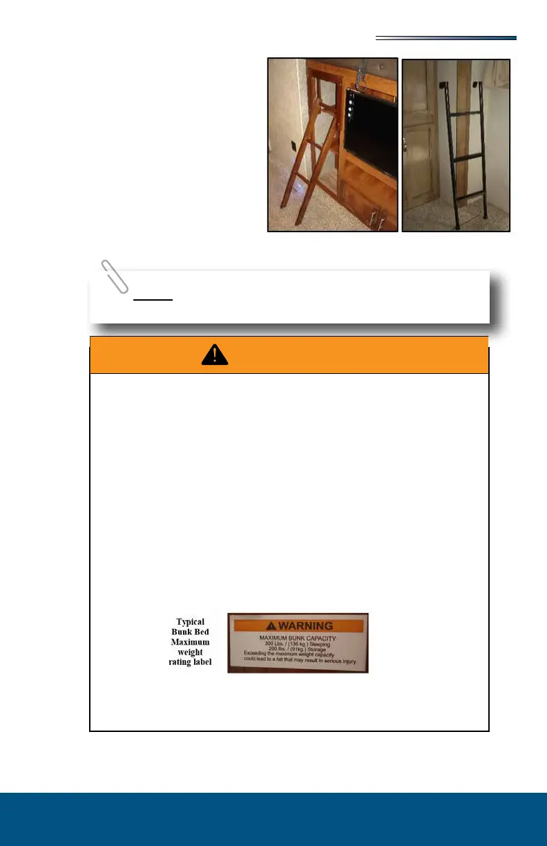 Weight limit of the bunk ladder (if equipped) is 300 lbs. (136 kg).