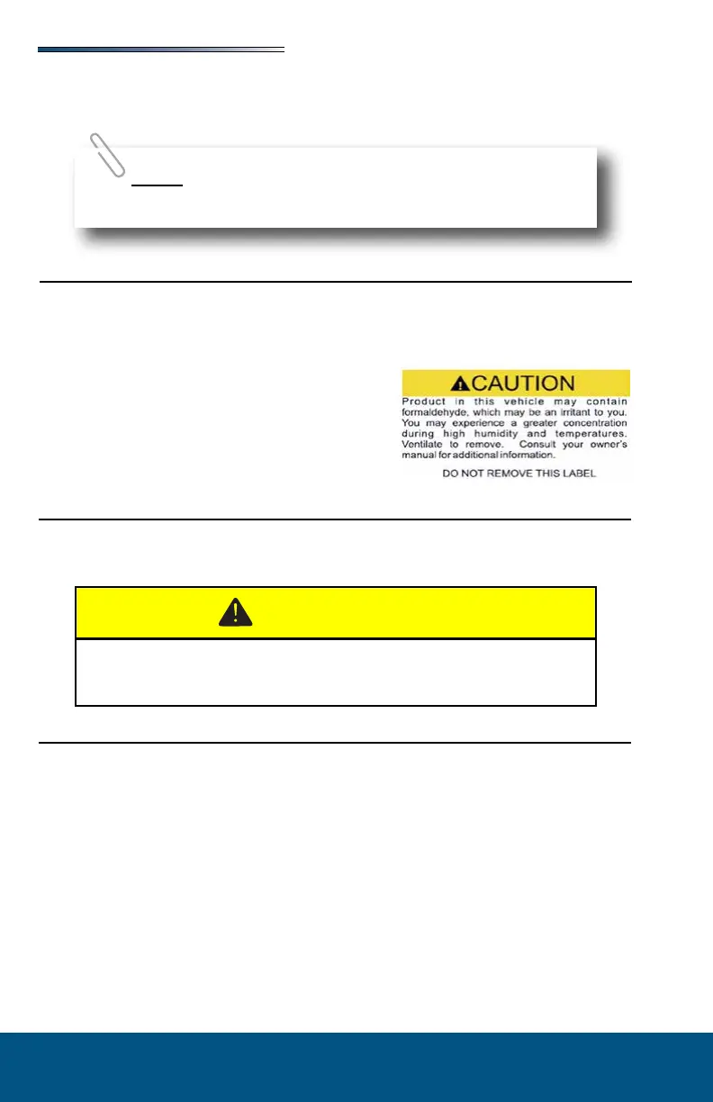 Some components in the recreation vehicle contain formaldehyde-based adhesives that may