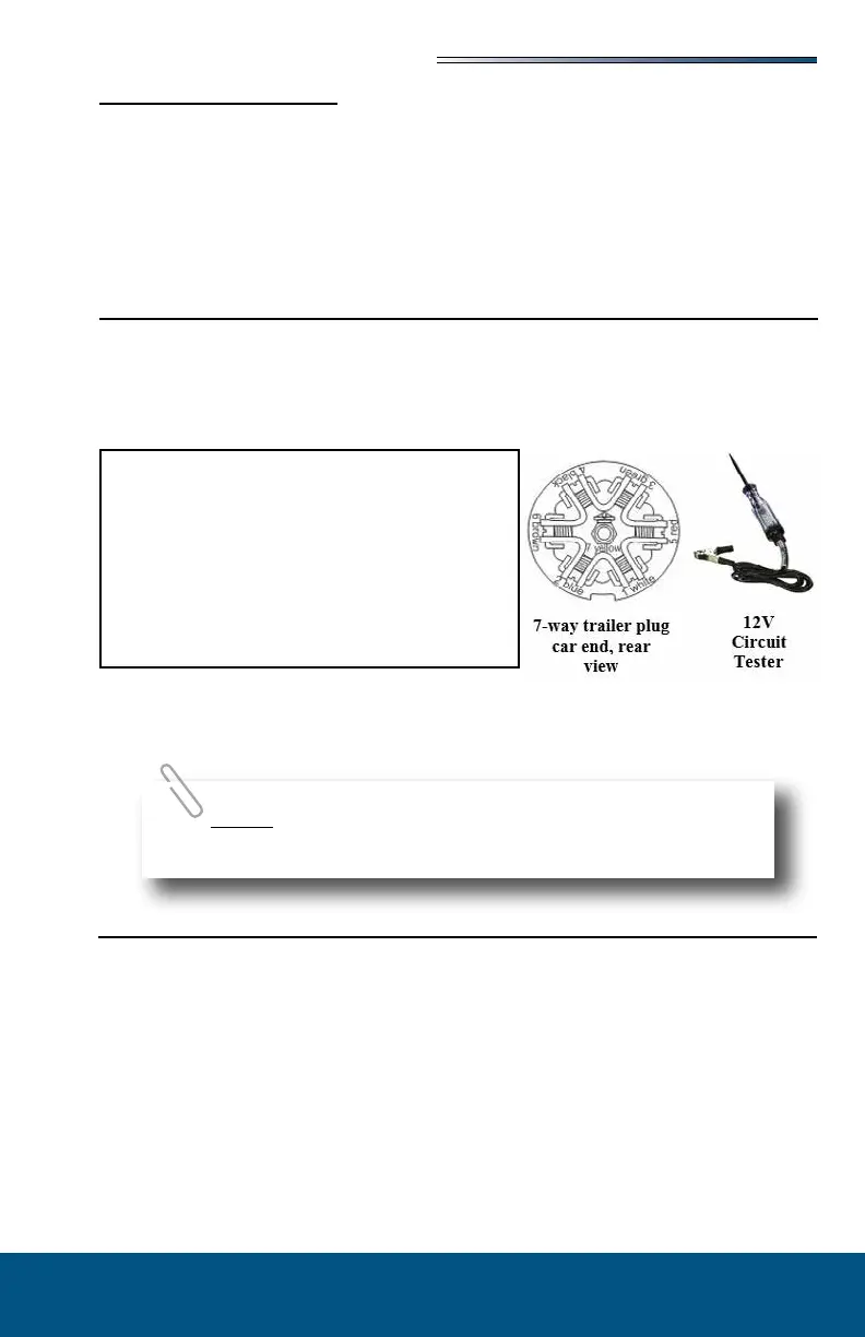 A 12V circuit tester is recommended to verify the trailer connec-