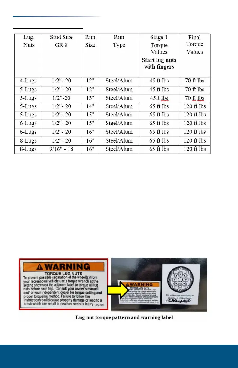 1. Prior to travel and after excessive braking, wheel lug nuts should be checked for torque.