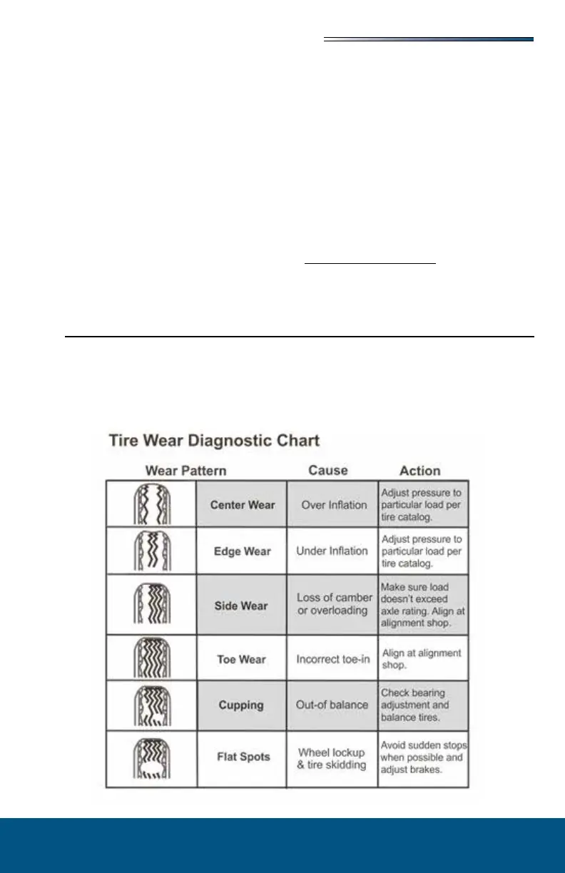 Alignment, balance and bearing wear will aect tire wear. Make sure to look for cracking,