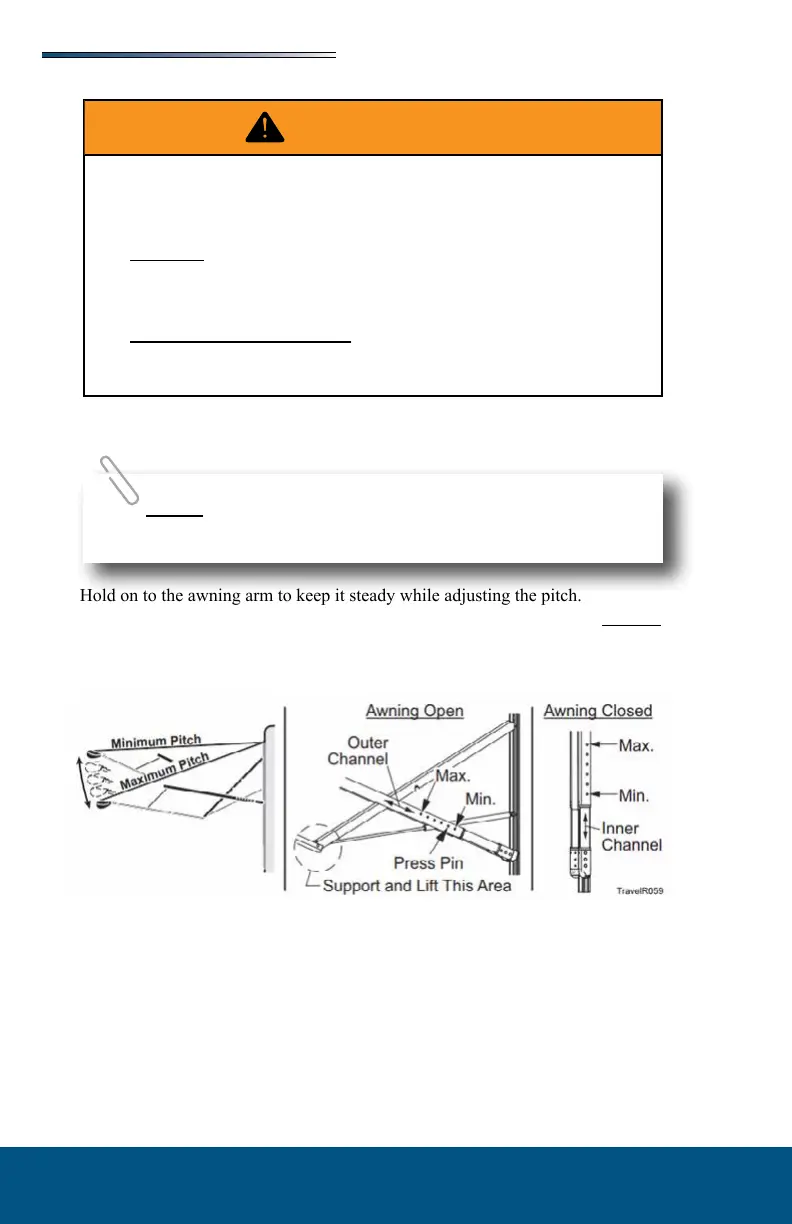 1. Hold on to the awning arm to keep it steady while adjusting the pitch.