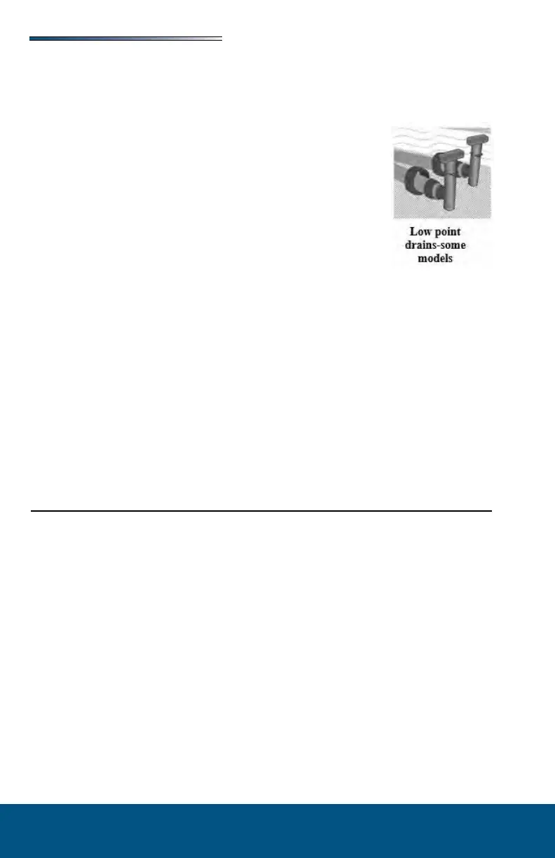 Exterior drains: Open the “low point drains” by removing