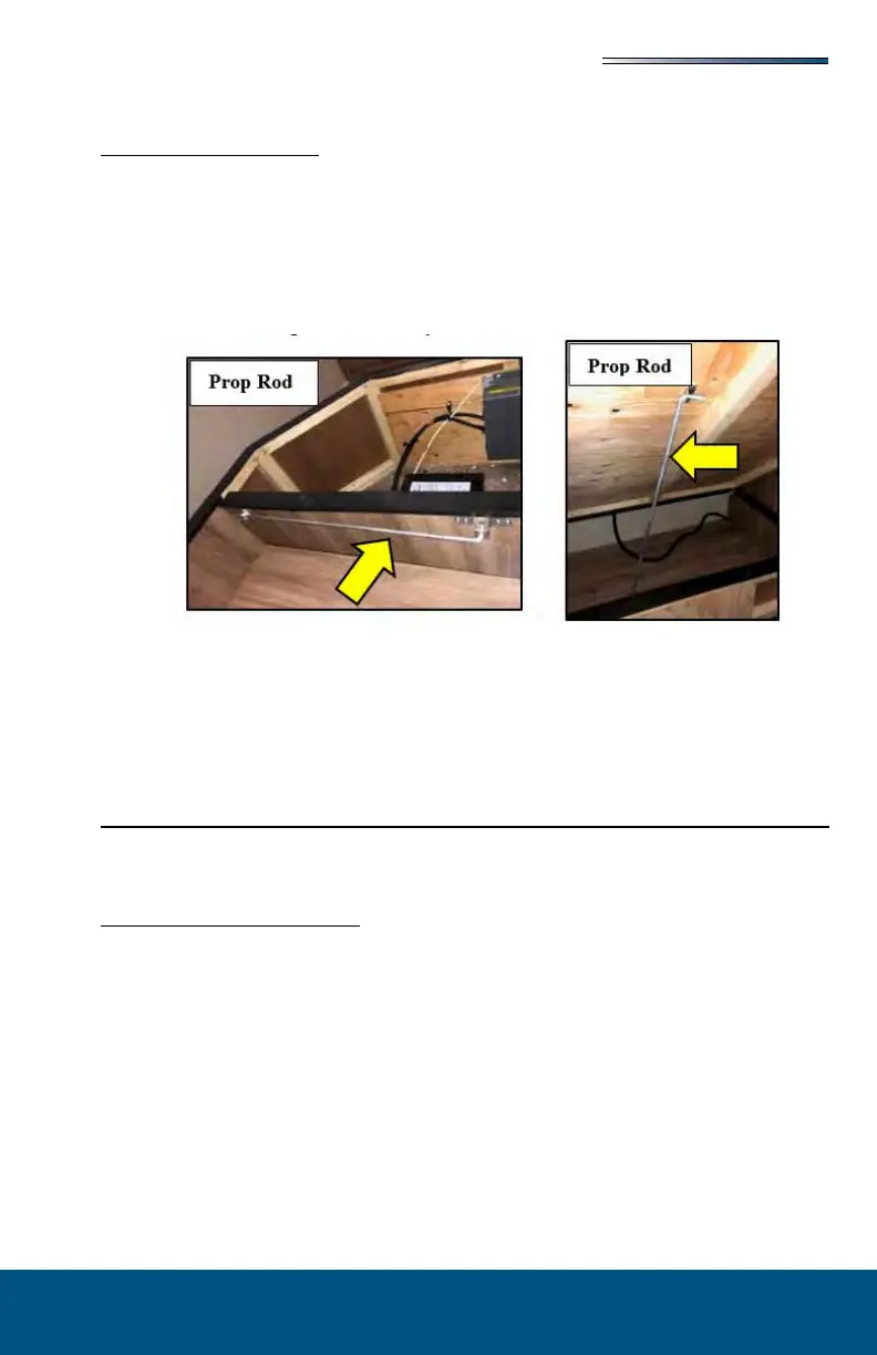 To lower the platform, release the prop rod from the bracket under the bed plat-