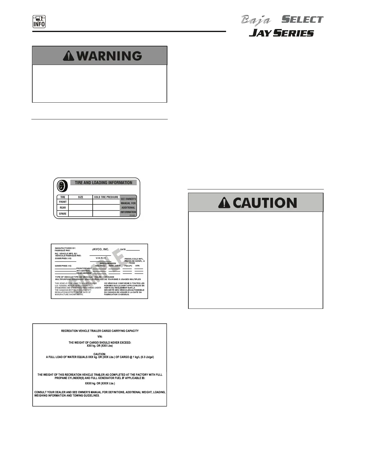 Vehicle weight labels are posted on Jayco