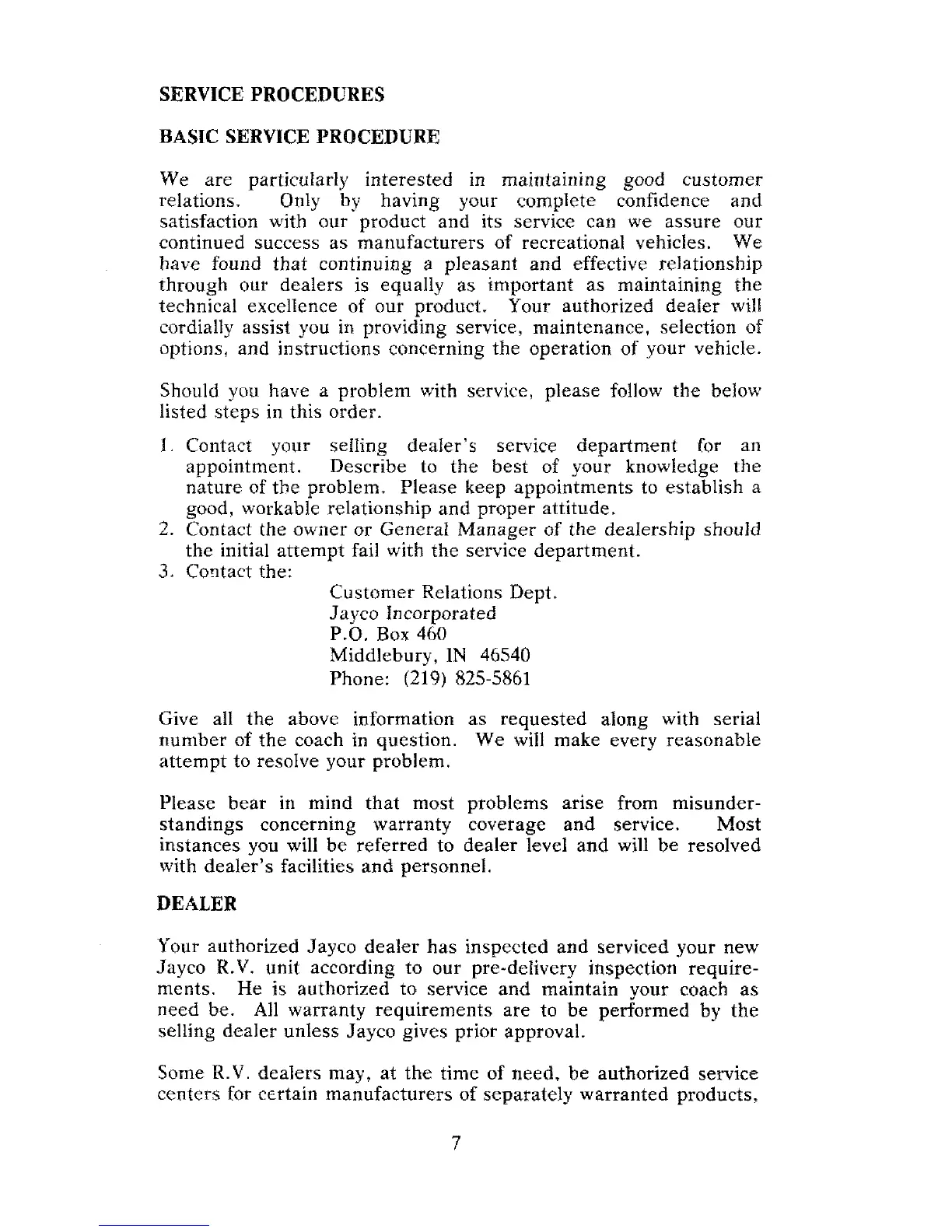 Your authorized Jayco dealer has inspected and serviced your new