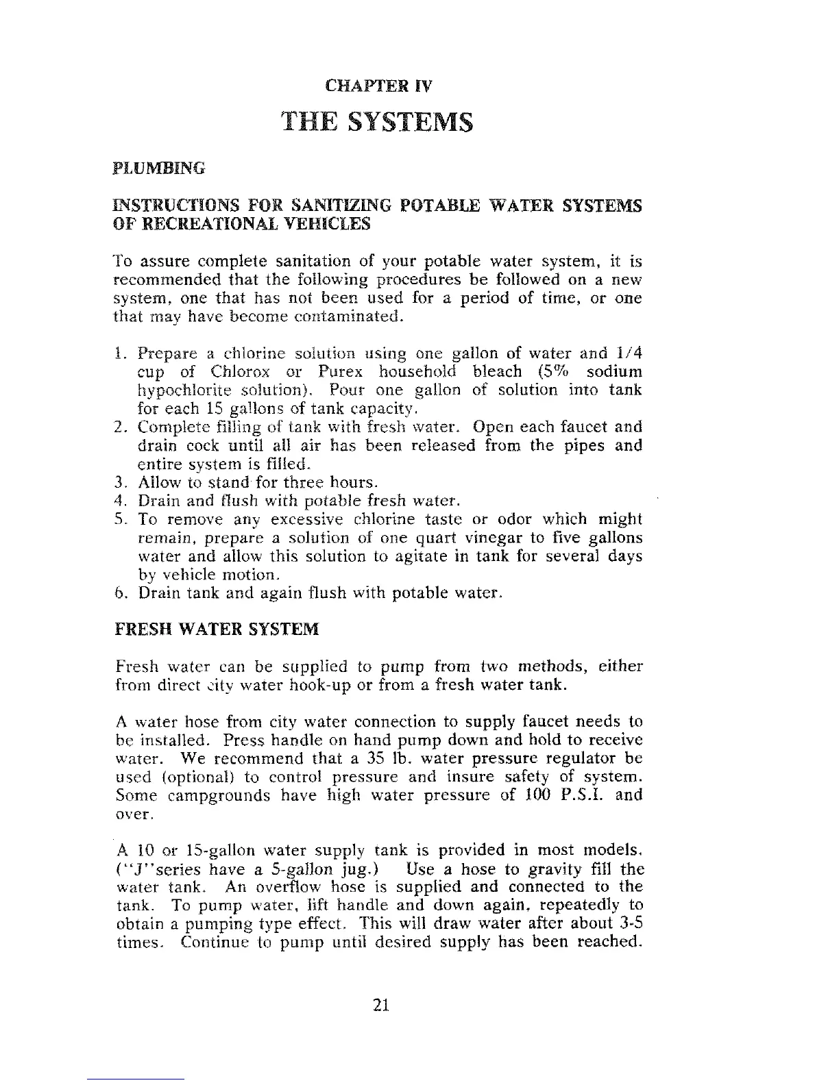 water hook-up or from a fresh water tank.
