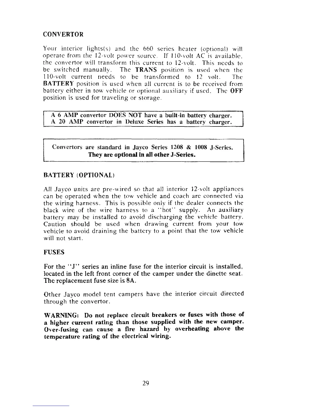 Convertors are standard in Jayco