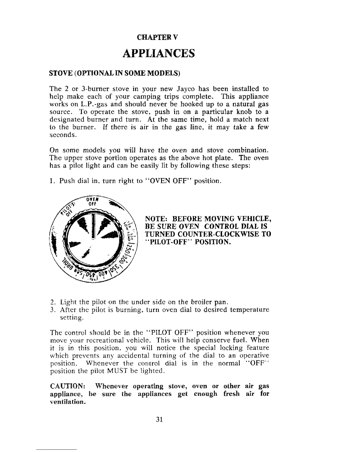 operate the stove, push in
