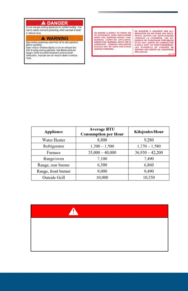 Most RV gas appliances are operated intermittently, and each has a dierent BTU rating.