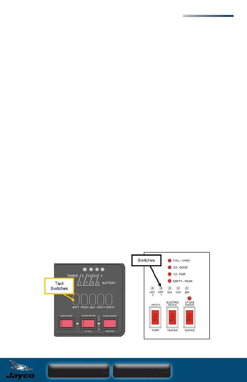 black water and auxiliary battery levels. These functions are controlled using the “tact”
