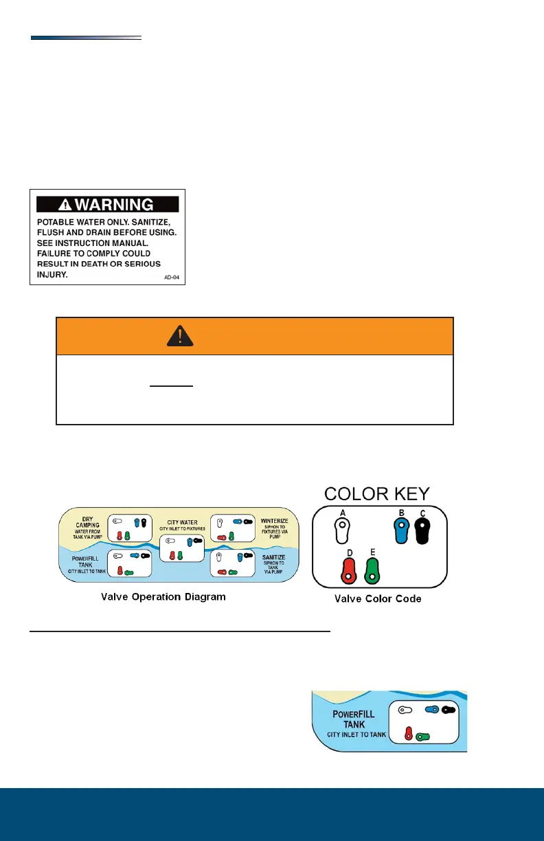 2. Set the color coded valves to POWER FILL TANK setting: