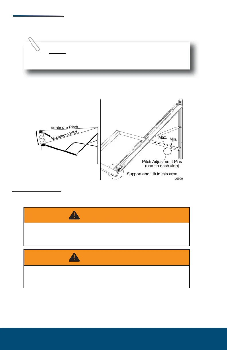 For awnings under 12 feet: The arms must be set at an equal pitch. Damage to