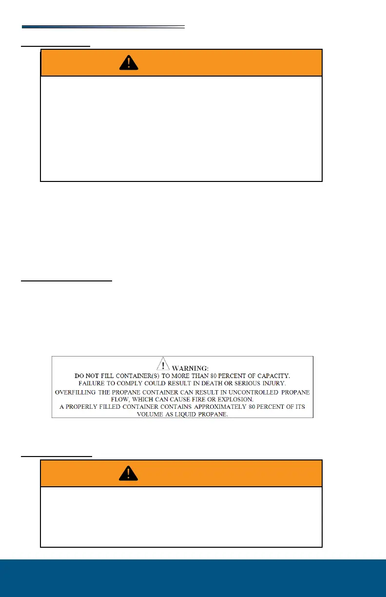 Never allow your propane tank to be lled above the maximum safe level as indicated by